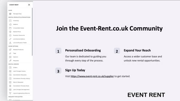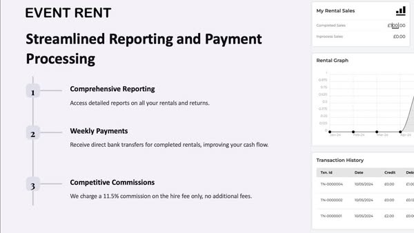 搜索关键词 event rental platform, equipment hire services, rental industry solutions, streamline rental operations, event supplier marketplace, asset safekeeping, increase rental opportunities, connect customer base, event management platform, UK event rentals优势 Streamlines rental operations,Connects with a wider customer base,Ensures safekeeping of assets