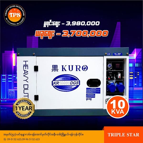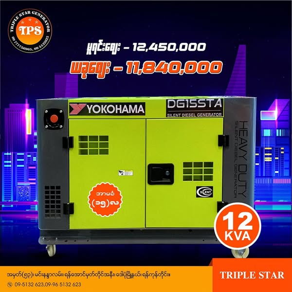 Triple Star Diesel Generators တွေရှိနေပါပြီ။ 💡✨