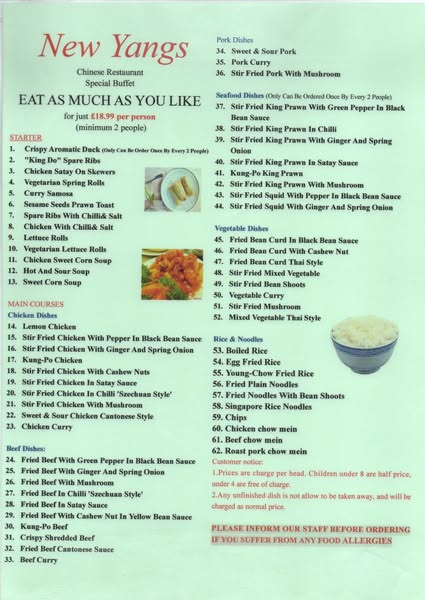 搜索关键词 New Yangs Chinese, Chinese Takeaway, Free Prawn Crackers, Online Order, Restaurant Website, Food Delivery, Chinese Food GB, Order Online, UK Restaurant, local Chinese优势 Free prawn crackers with orders over £20,Online ordering available