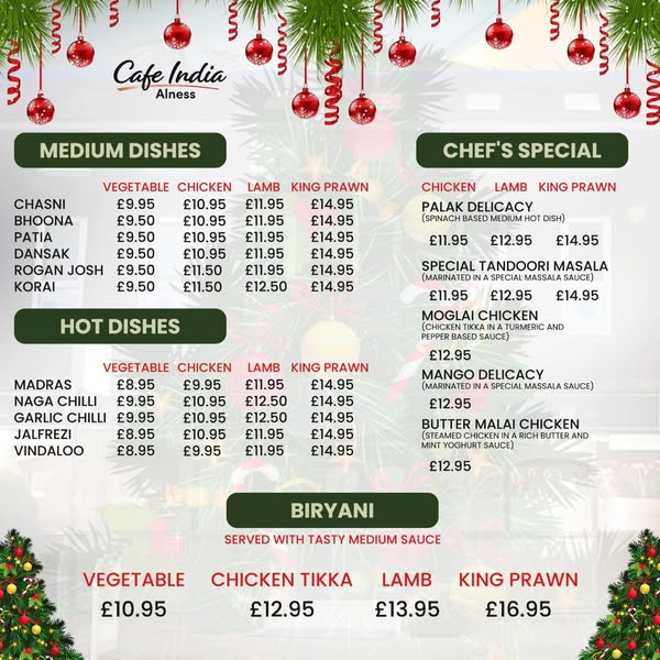 🌟 Get ready to enjoy the most delicious festive flavors from Cafe India Alness this Christmas Day! 🍛✨