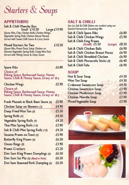 Sen Lin Kirkcaldy Chinese Takeaway Menu