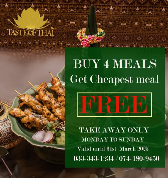 Order any 4 meals and get the cheapest one FREE – more food, more savings! (Valid until March 2025)
