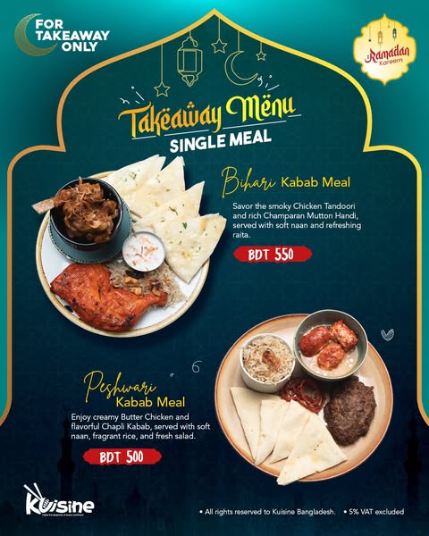 搜索关键词 Iftar takeaway, Ramadan feast, Khulshi restaurant, Chittagong food, Break fast meal, Ramadan platter, Delicious iftar, Iftar delivery, South Khulshi, Eastern Bank location优势 Convenient takeaway option for Iftar,Delicious and flavorful food,Suitable for sharing with loved ones