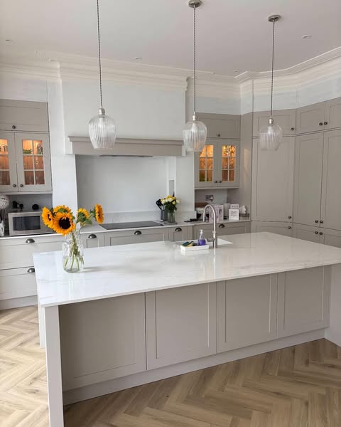 The Masterclass Kitchens Hardwick door in highland stone is complimented by NEFF Home appliances, Quooker boiling water tap and Silestone by Cosentino quartz worktop in ethereal haze. The finished result looks very inviting!