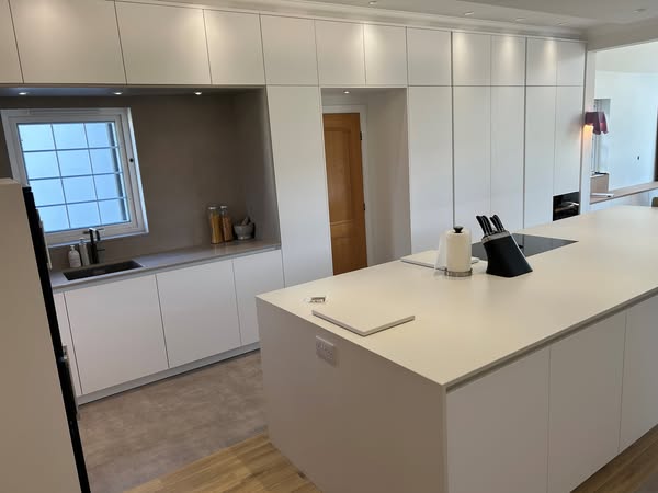 The client's brief was to develop a kitchen environment conducive to both hosting intimate family gatherings and providing a comfortable retreat for relaxation. In response to this brief, we designed and implemented a space defined by its handleless aesthetic that exudes both functionality and elegance. This was complemented by the inclusion of high-end appliances such as a Bora X Pure full induction downdraft cooktop and a Quooker boiling water tap, along with an ingeniously concealed butler's pantry and bar section.