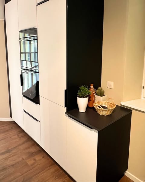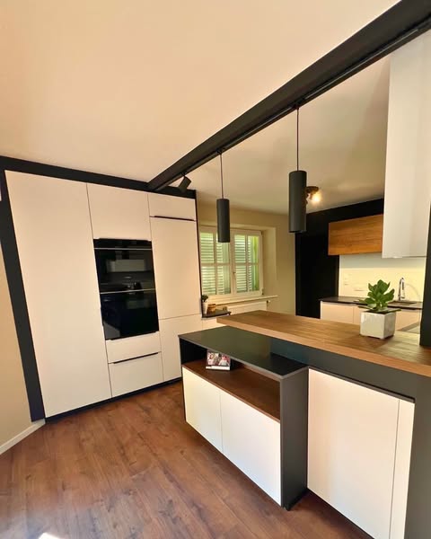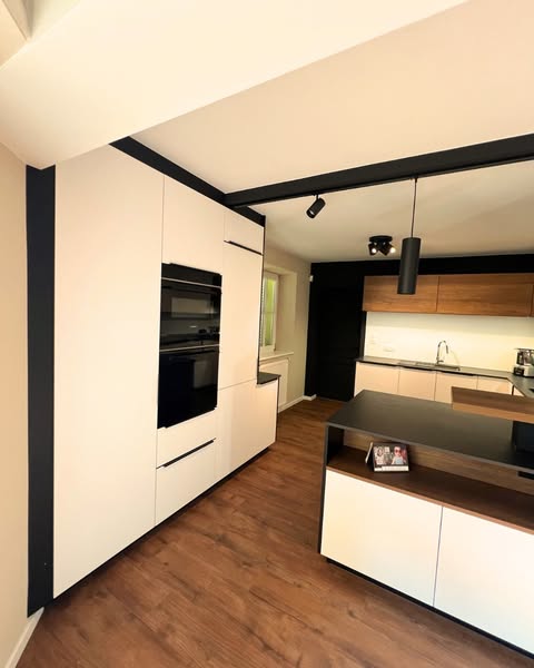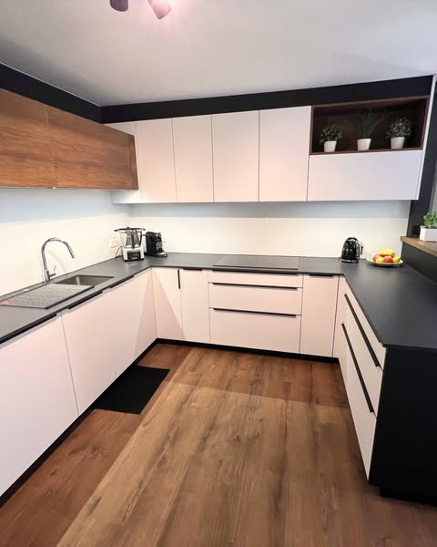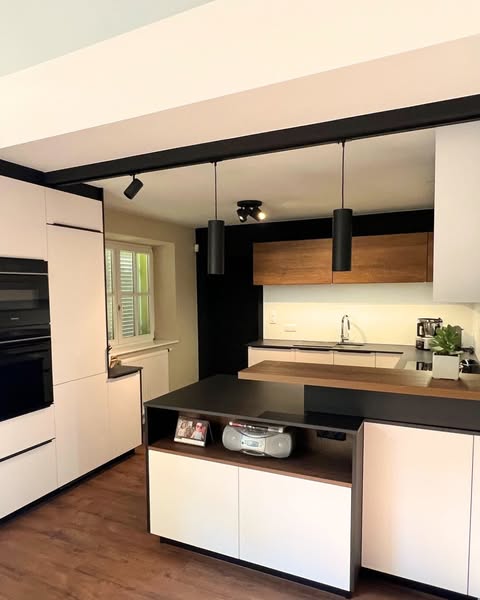 🔹 Façades en laque mate blanche, noire et bois