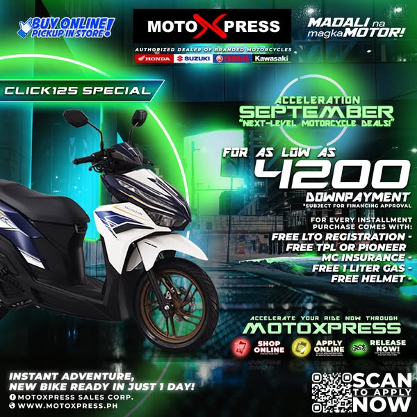 #Motoxpress #MotoxpressSalesCorp #BuyOnlinePickUpInStore #MadalinaMagkaMOTOR #YamahaPhilippines #HondaPhilippines #SuzukiPhilippines #KymcoPhilippines #KawasakiPhilippines #YamahaMotorcycles #SuzukiMotorcycles #HondaMotorcycles #KymcoMotorcycles #KawasakiMotorcycles #Motorcycle #MotorcycleDealership #Fastmotorcycleloan #Easymotorcycleloan #EasyProcess #MotorcycleFinancing #MotorcyclePurchase #FastAndEasyMotorcycle #MotoxpressSummerKickoff #MarchMalakingPromo #MotoxpressSummerEdition #MarchPromo #MotoxpressVibes #SummerRide #summeradventure
