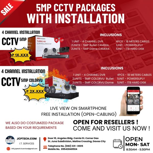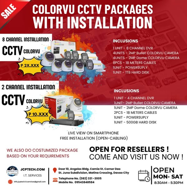 搜索关键词 CCTV system, security system, fire alarm, access control, Davao City, Philippines, online viewing, free installation, affordable security, business security优势 Affordable Packages,Customized Solutions,Free Site Survey and Consultation,Free Online Configuration/Viewing,Free Installation (Open Cabling),One Year Warranty,After Sales Guarantee,Budget-Friendly