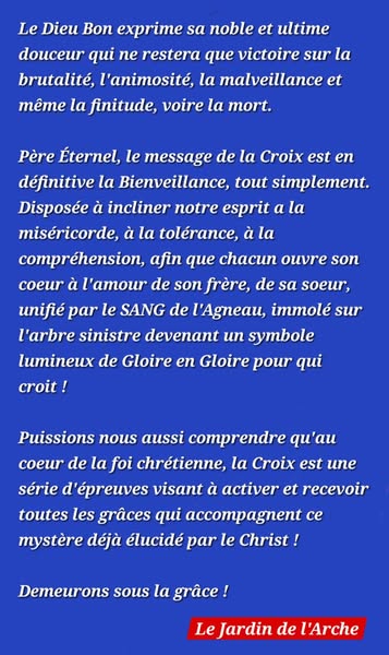 Père Éternel, le message de la Croix est en définitive la Bienveillance, tout simplement.