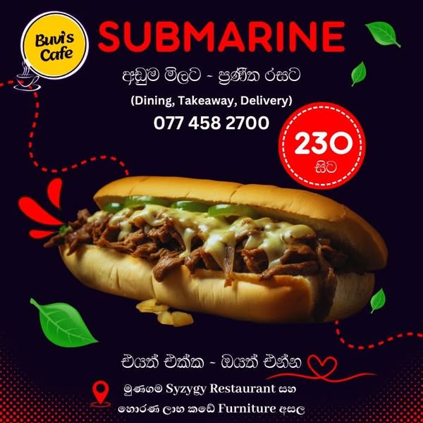 🌿 ඔයාටම තෝරගන්න Shorteats, Burger, Shawarma, Submarin, Toasted Bread, Kottu Mee, Kebab, Sausage Stick, Cool Drinks, Hot Drinks, Vegetable Salad, Soup Ice Cream වර්ග 110කින්ම..
