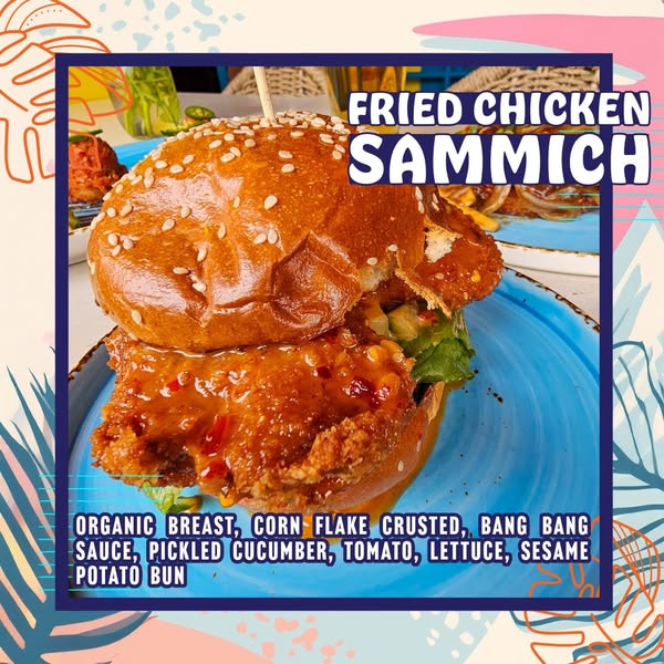 🍗 Fried Chicken Sammich – Corn Flake Crusted, Bang Bang Sauce.