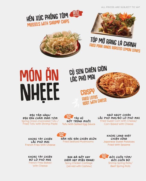Không còn là những món ăn quen thuộc, SIN Eatery đã nâng cấp menu với loạt món mới cực kỳ hấp dẫn, vừa hợp gu dân nhậu, vừa chiều lòng hội sành ăn. Mỗi món ăn không chỉ mang hương vị mới lạ mà còn được chăm chút về hình thức, đảm bảo lên hình xịn sò, check-in là auto đẹp 📸