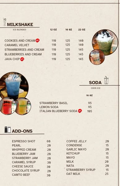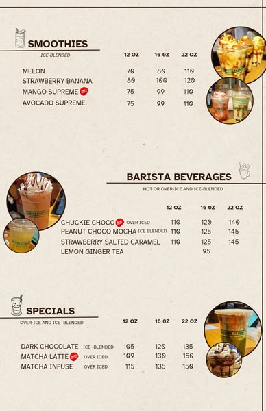 Updated menu as of July 14, 2025