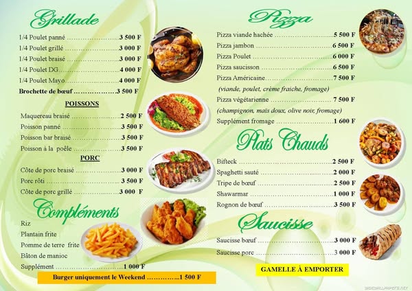 Bienvenue dans votre restaurant maintenant vous pouvez déjà mangé sur place et à un bon prix pour l'ouverture de notre restaurant nous allons vous faire un rabais de 5%sur tt vos menus deux pizza achetez et une boisson offert,la livraison toujours au frais du client et le client doit donner l'avance pour confirmer sa commande. Nous sommes situés à la texaco omnisports derrière la station MRS à côté de Éden group merci pour la bonne compréhension.