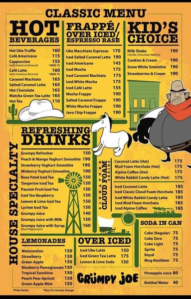搜索关键词 Grumpy Joe, food delivery, online order, cash on delivery, GCash payment, updated menu, restaurant menu, order now, Facebook orders, text message orders优势 Convenient ordering via Facebook and text,Cash on delivery and GCash payment options,Updated menu