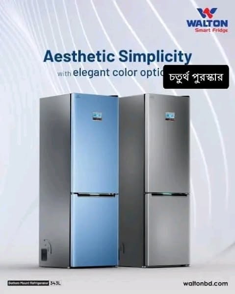 ✅ চতুর্থ পুরস্কার হিসেবে পেতে পারেন ওয়ালটন ফ্রিজ( ৭) জন।