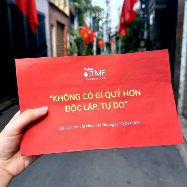 搜索关键词 Tâm Minh Food, vegetarian food, Vietnam holidays, discount promotion, free gift, healthy eating, plant-based diet, vegan options, anniversary sale, celeb endorsement优势 10% discount on orders over 1 million VND,Free "Proud of Vietnam" canvas bag,Free bean sprout plush toy with purchase of two boxes of milk,Endorsed by celebrity who eats the product daily,Products are rigorously tested