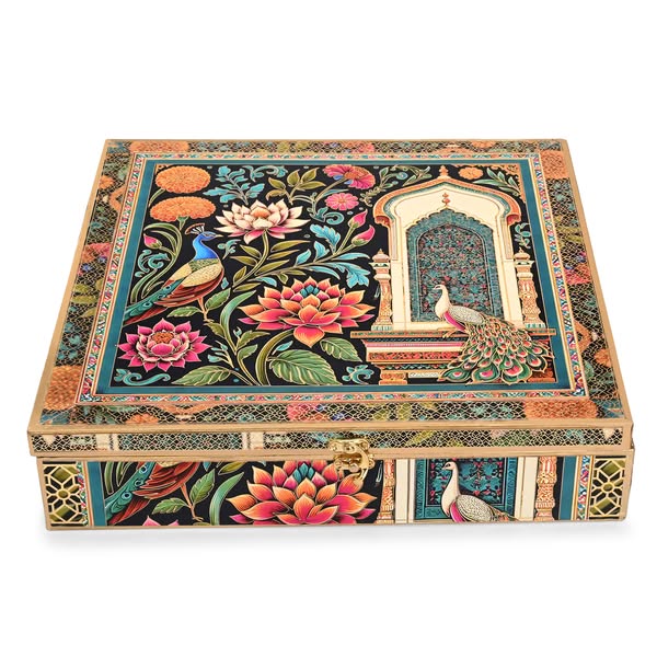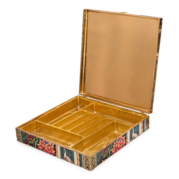 💎 Mughal-inspired artistry for premium gifting 📏 Food-safe & spacious compartments 🎉 Ideal for festivals & memorable events