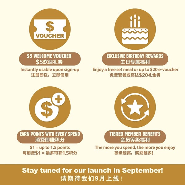 搜索关键词 Koo Kee loyalty program, singapore restaurant rewards, food loyalty membership, free welcome voucher, birthday rewards food, earn points food, tiered member benefits, AMK Hub launch, September food promotion, gaojifood membership优势 $5 Welcome Voucher,Birthday Rewards,Earn Points with Every Dollar Spent,Tiered Member Benefits