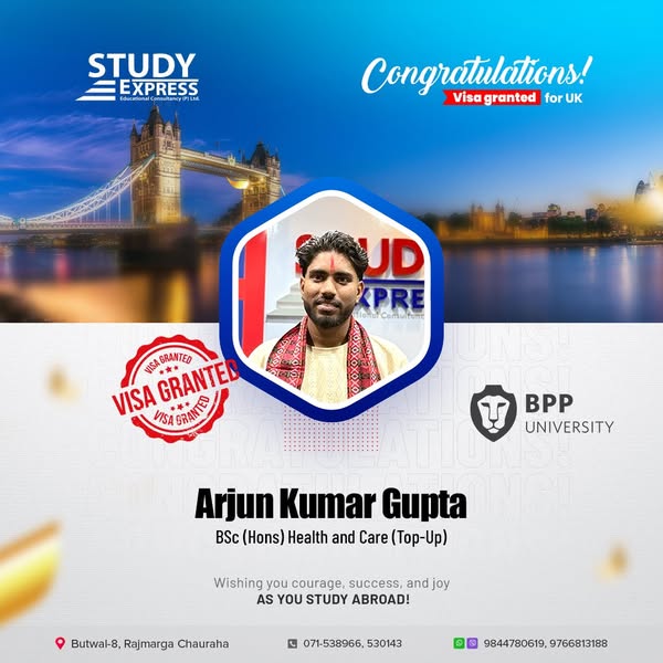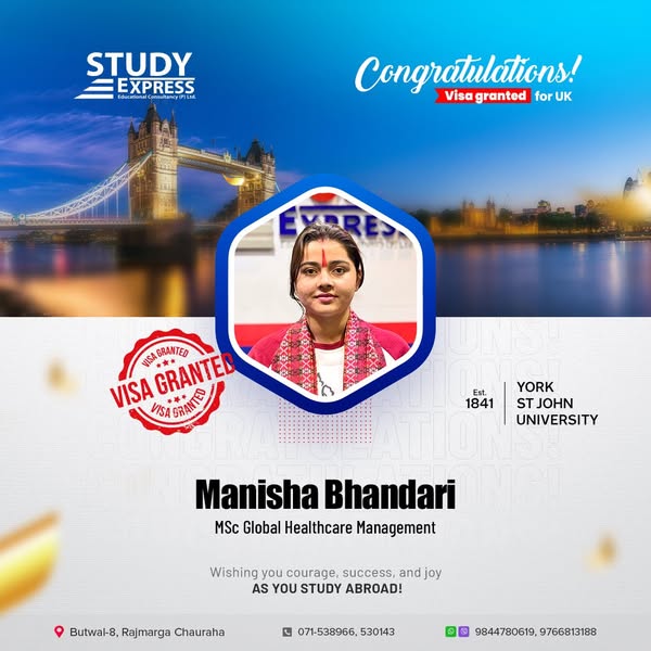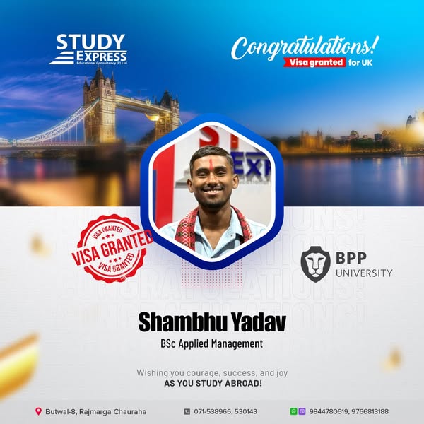 #UKVisaSuccess #StudyInUK #StudyExpressNepal #StudyAbroadNepal #ButwalConsultancy #VisaGranted #SuccessJourney #NepalToUK #TrustedEducationPartner #YourFutureOurMission