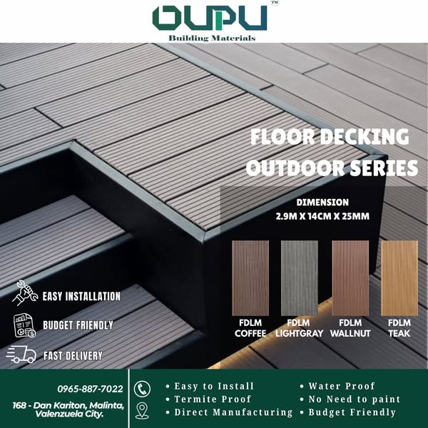搜索关键词 WPC decking outdoor, sustainable decking Philippines, composite decking price, UPVC ceiling panel, WPC wall panel, outdoor flooring solutions, building materials supplier, factory price decking, cash on delivery decking, direct manufacturer decking优势 Stunning aesthetics,Sustainable material,Durable and long-lasting,Wide range of related products,Direct Manufacturing and Factory Price,Guaranteed good quality and competitive price,Nationwide delivery and shipping,Showroom available,Cash on Delivery