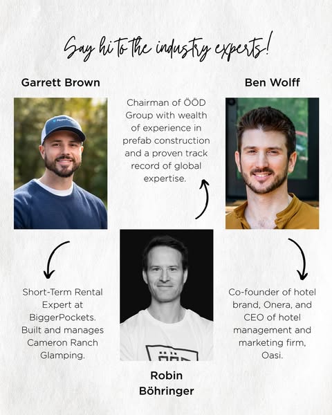 Hear from industry pros! Garrett Brown, Ben Wolff & Robin Böhringer — all experts in short-term rentals and experiential stays.