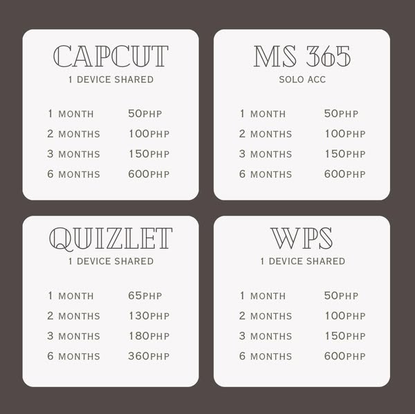Access a variety of premium accounts for entertainment, learning, and productivity—all at affordable prices!