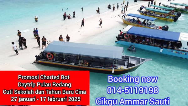 Jom Booking Bot Private charted Pulau Redang 2025 , trip 27 Januari - 17 februari 2025 ( Cuti sekolah dan Tahun Baru Cina )