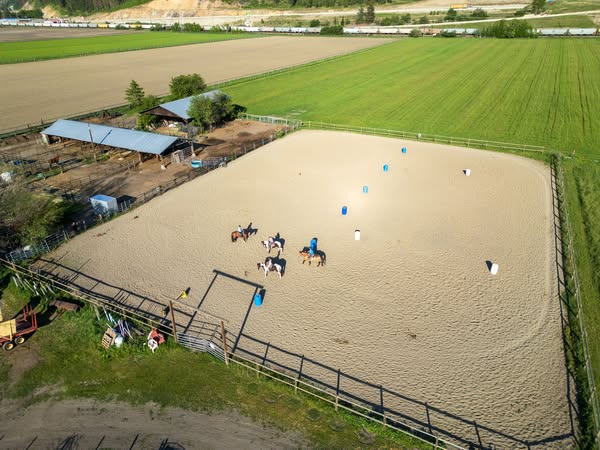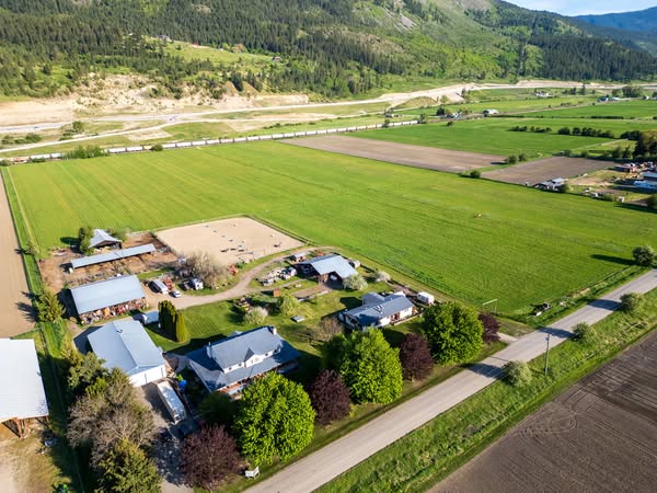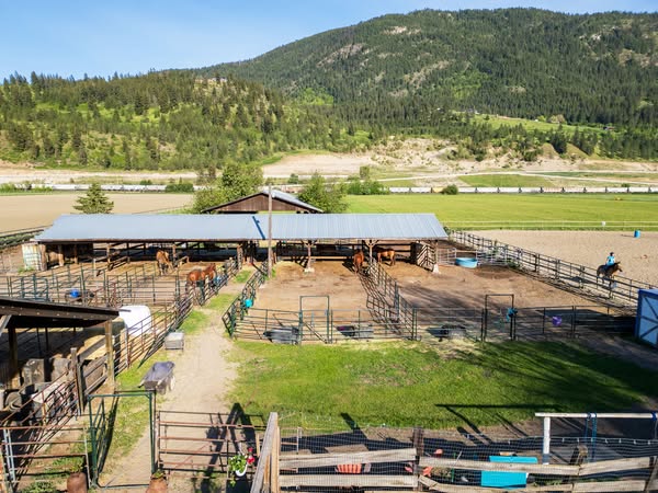 Located in Chase, BC only 40 minutes from both Kamloops and Salmon Arm sits an exceptional 30-acre equestrian estate blending serene rural charm with upscale amenities. Located on a beautiful, quiet country road. The estate includes 25 acres of high production-quality irrigated hay land producing up to four cuts per year. Irrigation water is provided by water licence and gravity-fed irrigation to wheel lines, meaning you are not paying for the cost of pumping water. The climate at this property is exceptional with the heat units necessary for growing almost any crop including vegetables. This is some of the Thompson Okanagan’s most coveted agricultural ground.