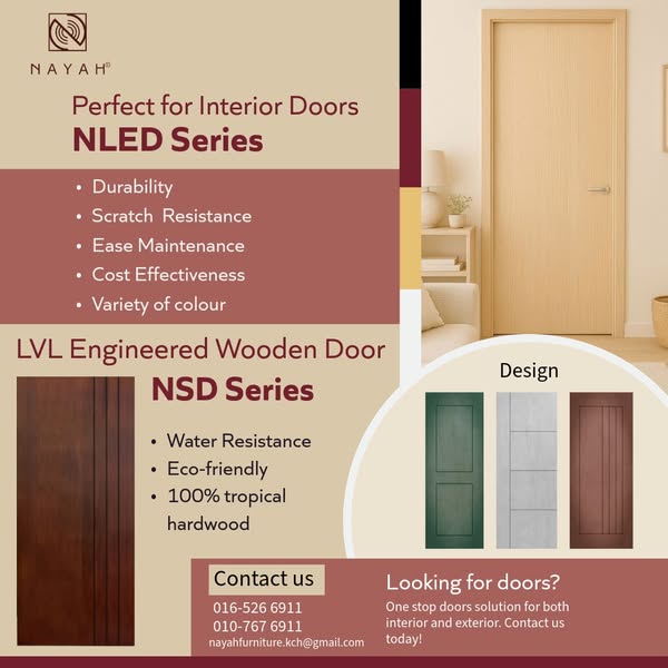 搜索关键词 Nayah Doors, Premium Doors, Home Love Expo, Miri Doors, Interior Doors, Exterior Doors, Eco-friendly Doors, Water Resistant Doors, Door Upgrade, Home Improvement优势 Exclusive premium door deals,Stylish main doors,Durable interior doors,Water-resistant, eco-friendly designs