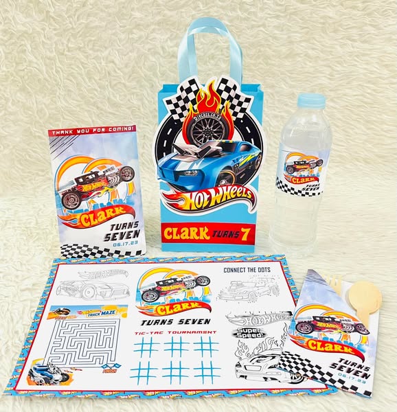 🎈Invitations, banners, kiddie table sets, party hats, paper mats, utensil sets, plates, cups, cupcake toppers, and more!