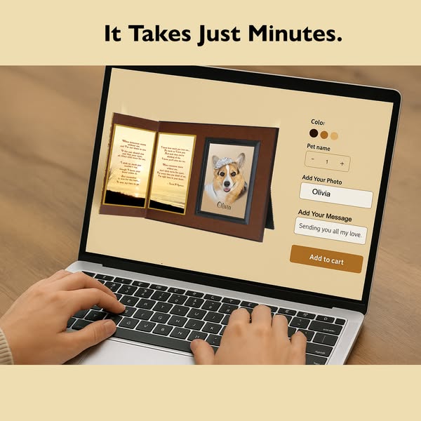 Choose the poem, frame color, and upload the photo. We do the rest—with care, quality, and compassion.