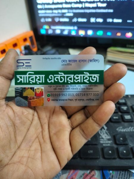 * ভিজিটিং কার্ড: ৩০০গ্রাম আর্ট কার্ড (ম্যাট / গ্লোসি), ক্রাফট পেপার কার্ড, PVC কার্ড