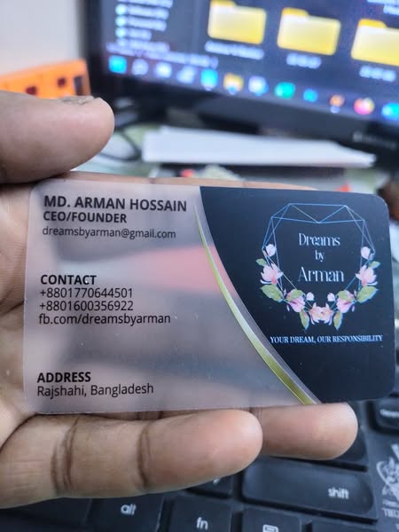 দেশের সবচেয়ে দামী, প্রিমিয়াম এবং আনকমন "ট্রান্সপারেন্ট ভিজিটিং কার্ড" সবচেয়ে কম মূল্যে শুধুমাত্র রেনডার বাংলাদেশে।