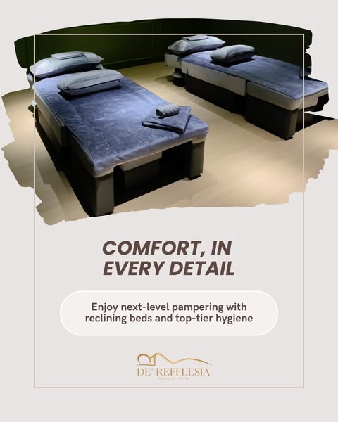 Step into De' Refflesia Wellness Center – the perfect spot for a fast yet fulfilling dose of relaxation. Whether it’s a quick foot massage or a full-body recharge, we’ve got your wellness covered.