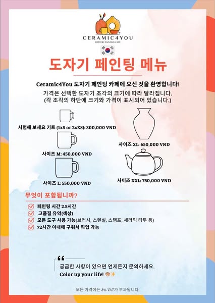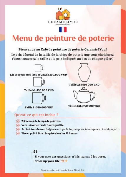 搜索关键词 pottery painting cafe, ceramic painting, arts and crafts studio, thao dien district, creative workshop, paint your own pottery, ceramic4you experience, family friendly activities, weekend fun, thủ đức activities优势 Multilingual Information,Central Location,Clear Pricing