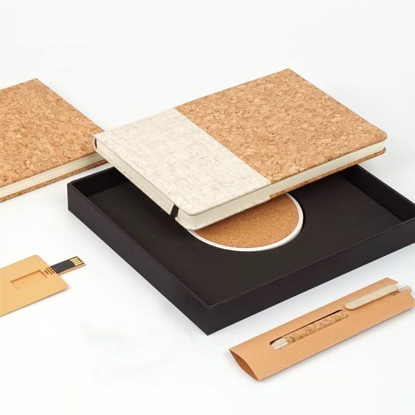 ✔ Cork notebook + Cork pen + Wheat Straw USB