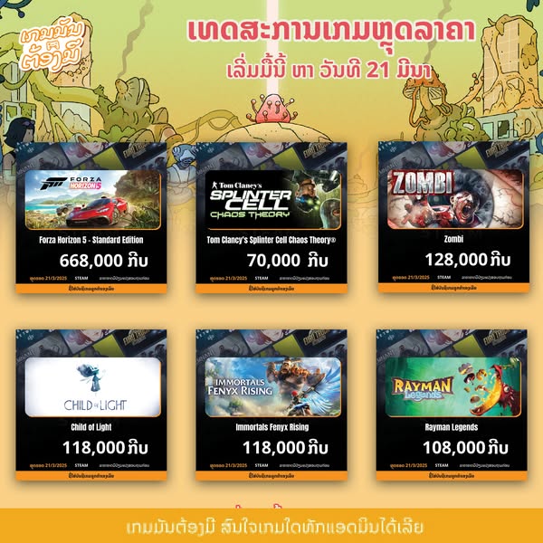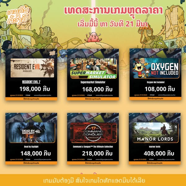 🔥ເທດສະການ Steam Spring Sale ມາແລ້ວເລີ່ມມື້ນີ້ ຮອດ ວັນທີ 21 ມີນາ 2025 ເວລາ 00:00AM ເປັນເທດສະການໃຫຍ່ທີ່ຫລຸດລາຄາໂຄດຫຼາຍແລະເກືອບຈະທຸກເກມ🔥