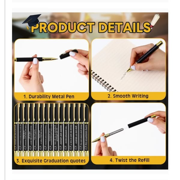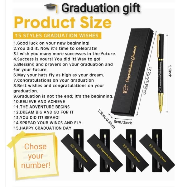 🖋️ The pens are engraved with 15 different heartfelt messages for the graduates, serving as reminders of their achievement and inspiration for the journey ahead, resonating with the spirit of graduation, creating a memorable gift.