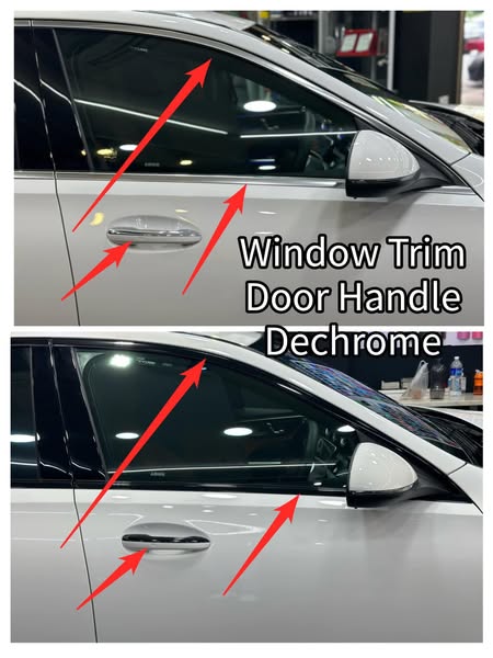 Car dechroming refers to the process of removing or covering the chrome trim or accents on a vehicle. Chrome trim can include elements like window surrounds, door handles, grille accents, and badges. Dechroming is often done to achieve a sleeker, more uniform appearance or to customize the look of a car. This can be achieved through applying vinyl wraps