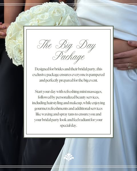 Tailored for brides and their parties, these luxurious experiences include soothing massages, radiant facial, and flawless makeup and hair styling. Whether for a bachelorette spa day or the big day itself, our expert team ensures you feel relaxed, rejuvenated, and picture perfect.