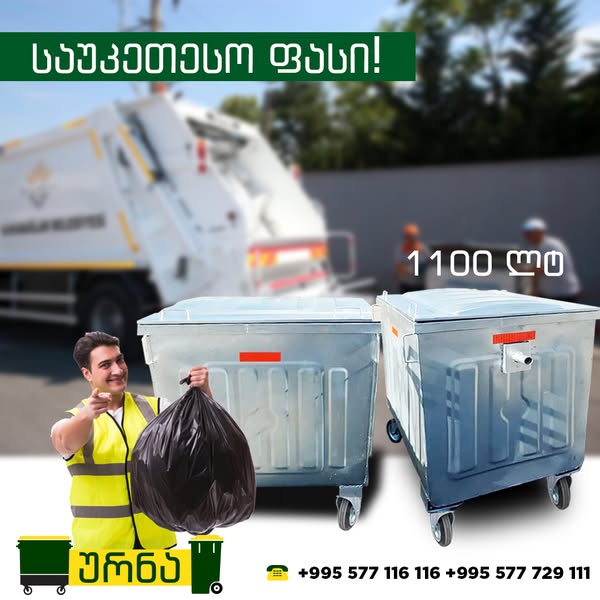 🚛 გალვანიზირებული ნაგვის კონტეინერი
