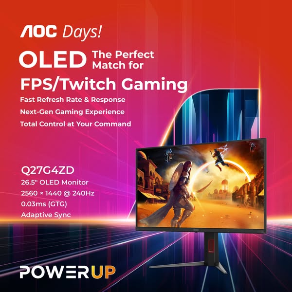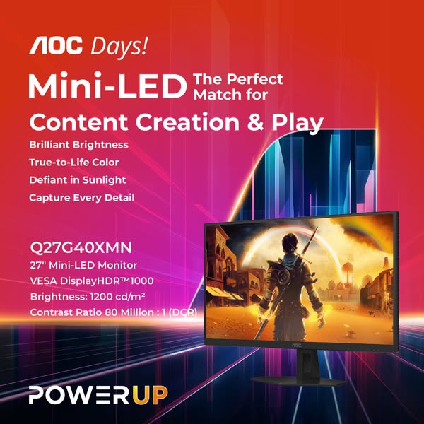 搜索关键词 gaming monitor, OLED monitor, miniLED monitor, high refresh rate, fast response time, content creation, visual professionals, FPS gaming, AOC Days, immersive display优势 High Refresh Rate (240Hz+),Fast Response Time (0.1ms),Infinite Contrast (OLED),True-to-Life Colors (OLED),High Brightness (miniLED),Studio-Grade Color Accuracy (miniLED)