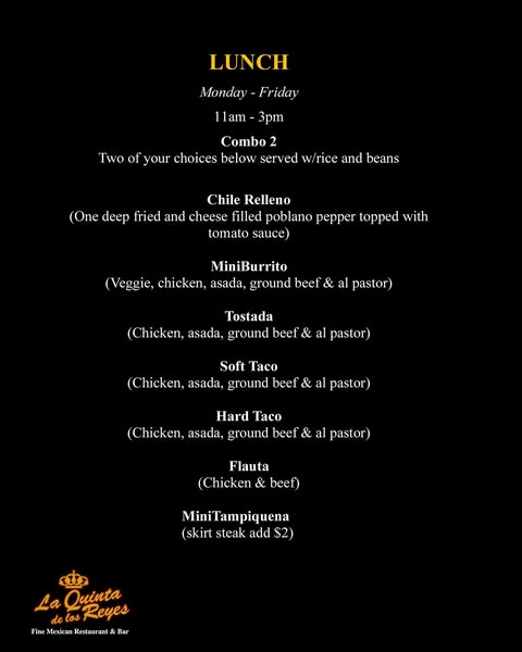 搜索关键词 lunch specials aurora, mexican food catering, aurora venue rental, combo platters ground beef, la quinta aurora restaurant, mexican lunch specials, aurora eats lunch, downtown aurora il food, party venue rental, catering mexicano aurora优势 Affordable Lunch Specials (under $12),Delicious Combo Platters with new ground beef option,Fast and Flavorful Service,Dine-in, Take-out, and Catering Services,Party Venue Rental