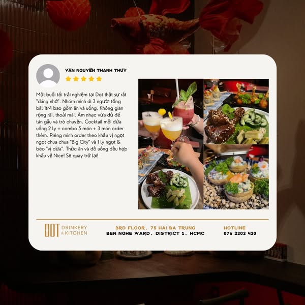 📝 Phản hồi từ Đồng Men chính là động lực để 𝐃𝐎𝐓 không ngừng nâng cao chất lượng đồ uống và dịch vụ mỗi ngày. 𝐃𝐎𝐓 trân trọng từng đánh giá, dù là lời khen hay góp ý, vì đó đều là những đóng góp quý giá giúp 𝐃𝐎𝐓 ngày càng hoàn thiện hơn.