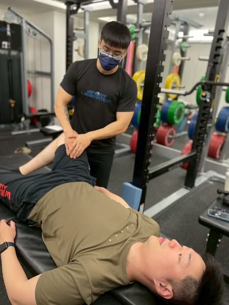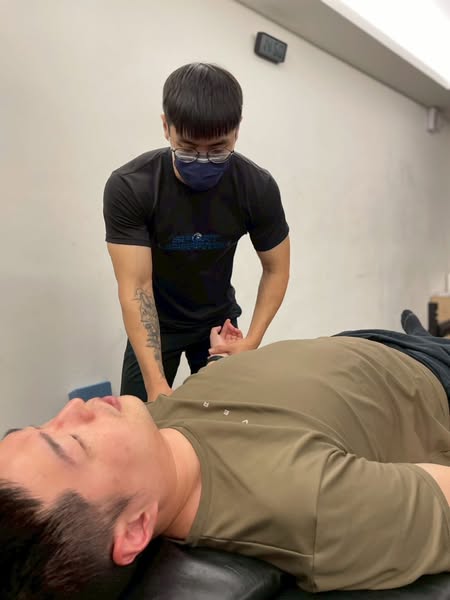 壓王管理師Nemo透過徒手放鬆下肢、軀幹、上肢肩胛週邊的肌筋膜,讓翁先生能夠有好的關節活動度並配合三宅健身教練Cindy訓練肩胛骨週邊肌群的穩定度,協助翁先生建立好的體態&減少代償情形😎