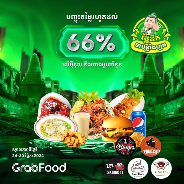 搜索关键词 GrabFood delivery, food delivery service, order food online, Cambodia food, fast food delivery, restaurant delivery, online food order, mobile food app, food near me, easy food order优势 Convenient food delivery,Wide selection of restaurants,Easy ordering process