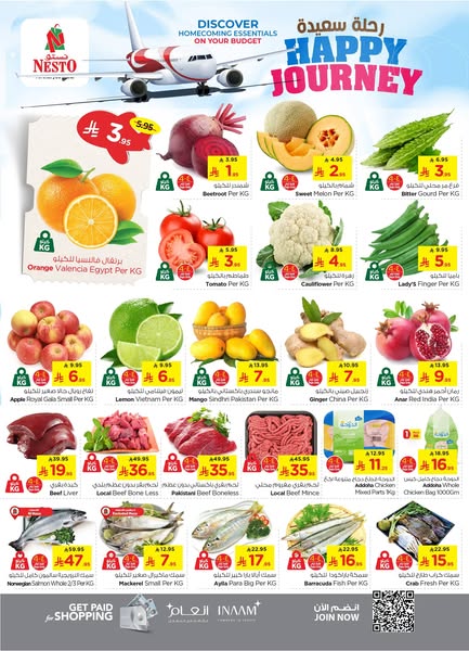 🧳✈️ HAPPY JOURNEY Deals at Nesto 🌟 ✈️🍊Grab your homecoming essentials at unbeatable prices — from fresh produce and meats to cleaning products and snacks. , find the perfect companion for every journey – all at unbeatable prices! 🎒💼 Pack more. Pay less. Only at Nesto! 🛍️