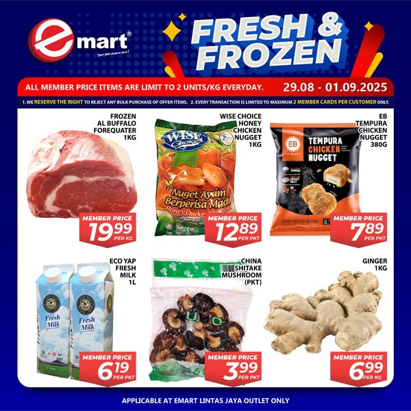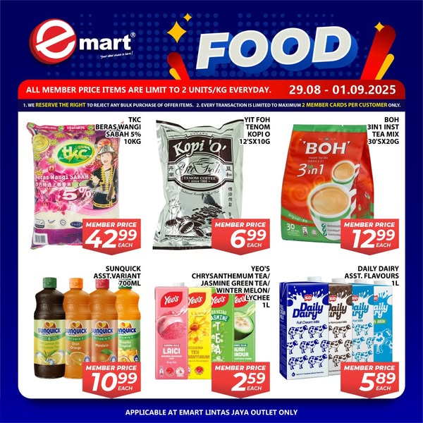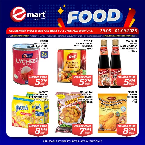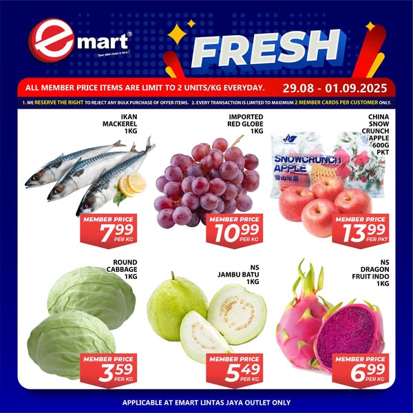 Applicable at Emart Lintas Jaya outlets.