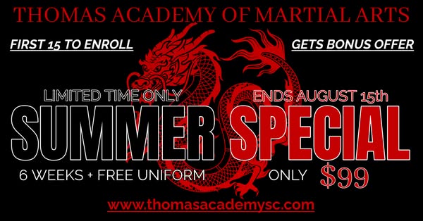Looking for a fun, powerful way to boost confidence, discipline, and focus — for yourself or your child? At Thomas Academy of Martial Arts, we’re opening up a limited-time trial program to help families experience the life-changing benefits of martial arts… without any long-term commitment. 👉 Get 6 Weeks of Classes for ONLY $99! Whether you're looking to: Help your child build confidence, focus, and self-control (Mini Dragons & Youth Programs) Start your own martial arts journey and get in shape Learn real-world self-defense (including our popular Women’s Self-Defense classes) Or even train in something unique like Kummooyeh – Korean Sword & Archery... This is the perfect chance to give it a try — no pressure, no contract, and no experience needed. 💥 What’s Included: ✅ 6 weeks of martial arts training ✅ Full-body fitness, discipline, and leadership development ✅ Fun, safe, and structured classes taught by a Marine Corps veteran ✅ Optional free uniform if you sign up after the trial! Limited time only !!! Act NOW !!